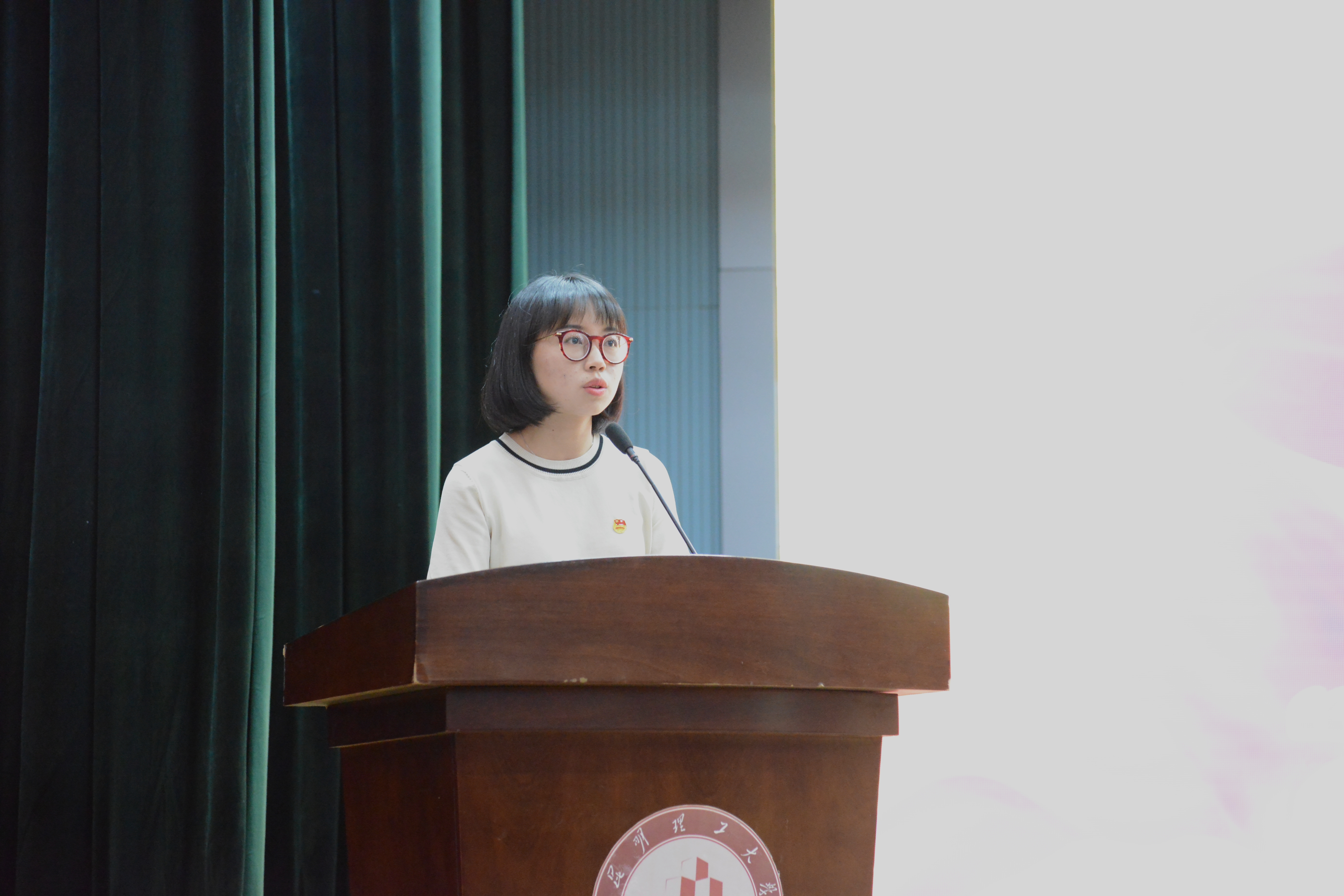 “杰出团员青年先锋”获奖代表编辑141班万剑英同学发言