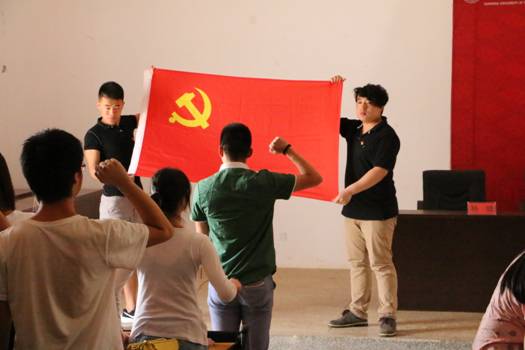 接下来进行的是预备党员入党宣誓活动,由党员代表张瀚中领誓。同学们热切的表达了对党的忠诚,对责任的重视。这不仅对党的誓言,也是对党员本身的自我要求。