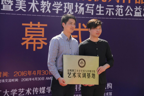 10届毕业生、昆明信息港视频中心主任王黎媛主持,学院党委委员、院学工办主任代表学院向昆明美院画室授予“艺术实训基地”牌匾。