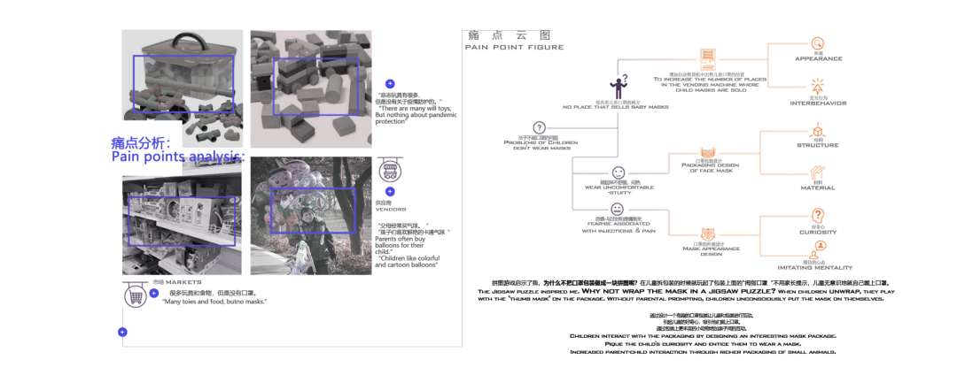 该设计从全球新冠疫情防控的角度出发,借助可持续与情感化设计理念,将“勤洗手”、“戴口罩”、“勤消毒”等防疫知识通过可视化与可玩性的趣味手指游戏融入到儿童口罩包装盒上,以此培养儿童日常戴口罩的习惯,并消减孩子们对口罩的抵触情绪与恐惧感,为全球新冠疫情防控贡献中国智慧。