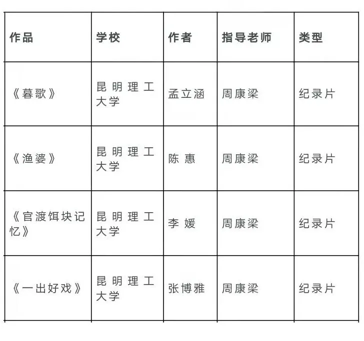 2021年11月8日,中国高校影视学会民族影视专业委员会第三届全国大学生少数民族题材影视作品大赛组委会公布五个组别共68部入围作品名单,韩国AV