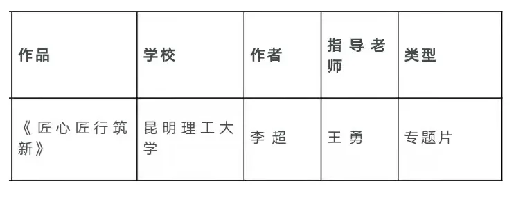 本科生在三个组别中有八件作品入围,一名研究生的作品入围专题片组,这是学院在全国同类赛事单次比赛中入围最多的一次。