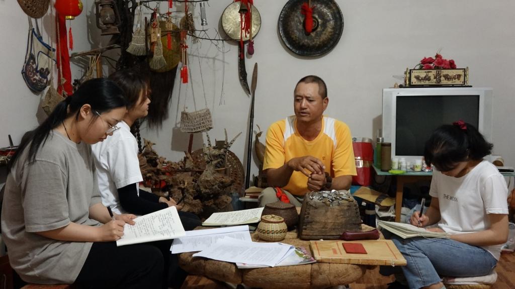此次暑期调研的主要内容为毕摩文化传承人口述史和彝族撒尼人家庭相册影像志的采集整理。参与的研究生有2019级广播电视姜佳娟,2020级艺术学理论沈桃、慈湘,2020级广播电视屈佳欣、宋颖怡,以及2021级广播电视专业的原开轩。为期一个月的田野调研,团队成员分别对石林镇、长湖镇、圭山镇、鹿阜镇等多个村落进行走访,采集、拍摄了12位毕摩文化传承人口述史资料,记录了35个彝族撒尼人家庭相册的相关资料。
