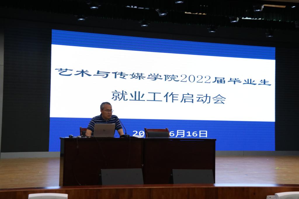 在小剧场召开2021届毕业生就业工作推进会和2022届毕业生就业启动会。会上,张建国副院长介绍了近年的就业形势和政策,敦促同学们要重视就业工作,主动搜集就业资讯,提前谋划未来发展。