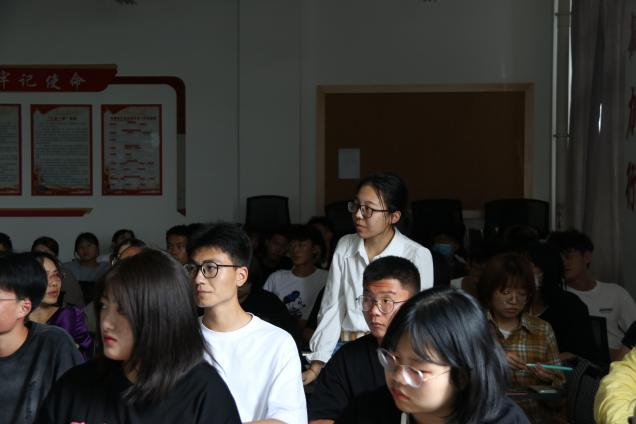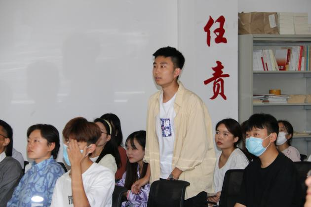 下午13时20分,周峰越副校长来到教室,等待上课铃声敲响的同时,了解同学们对大学专业的认识情况。