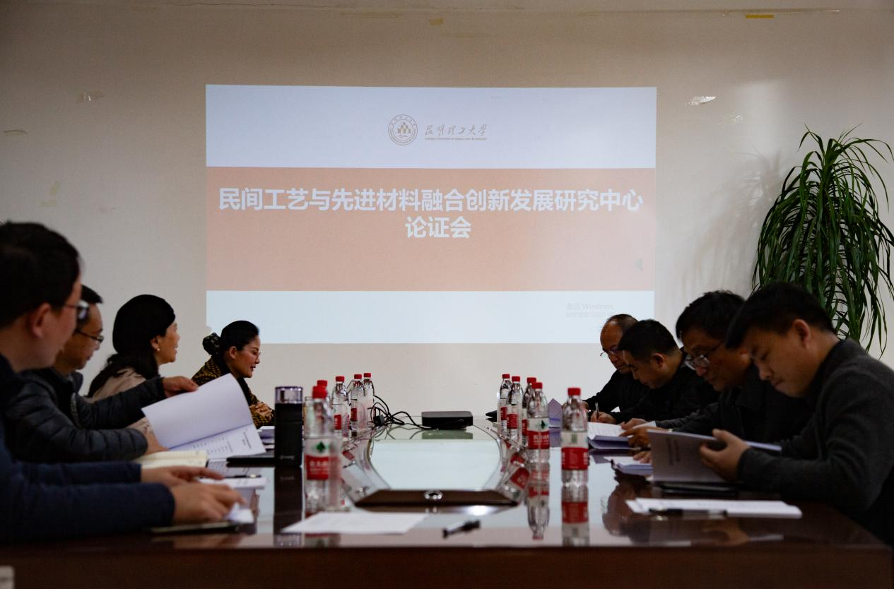 许佳院长主持,孙鸿雁教授对研究中心建设规划及基本情况进行了介绍。与会专家们通过听取汇报、交流质询等方式考察了中心建设情况,做了详细的评述和分析,为研究中心的建设落实提供了宝贵的意见和建议。原云南省社科联主席范建华提出,民间工艺的生产型传播传承比传统保护性传承更重要,要将工业生产和艺术创新结合起来,注重产品市场开拓和相关人才培养;人事处黄明勇处长指出,高校作为材料创新技术、弘扬民间艺术思想的策源地,理应在民间工艺与现代工业材料设计融合领域开创新局面、展现新作为;云南大学李浩教授提出要建立相应的产品品牌,做好宣传工作;云南白药国家级技能大师范志伟则指出了研究中心目前面临的一定问题。专家们认为中心定位明确,研究基础扎实,研究内容前沿,研究队伍充实,建设思路清晰,预期目标合理,服务面向精准,保障措施充分,具有较强的建设必要性和可行性。