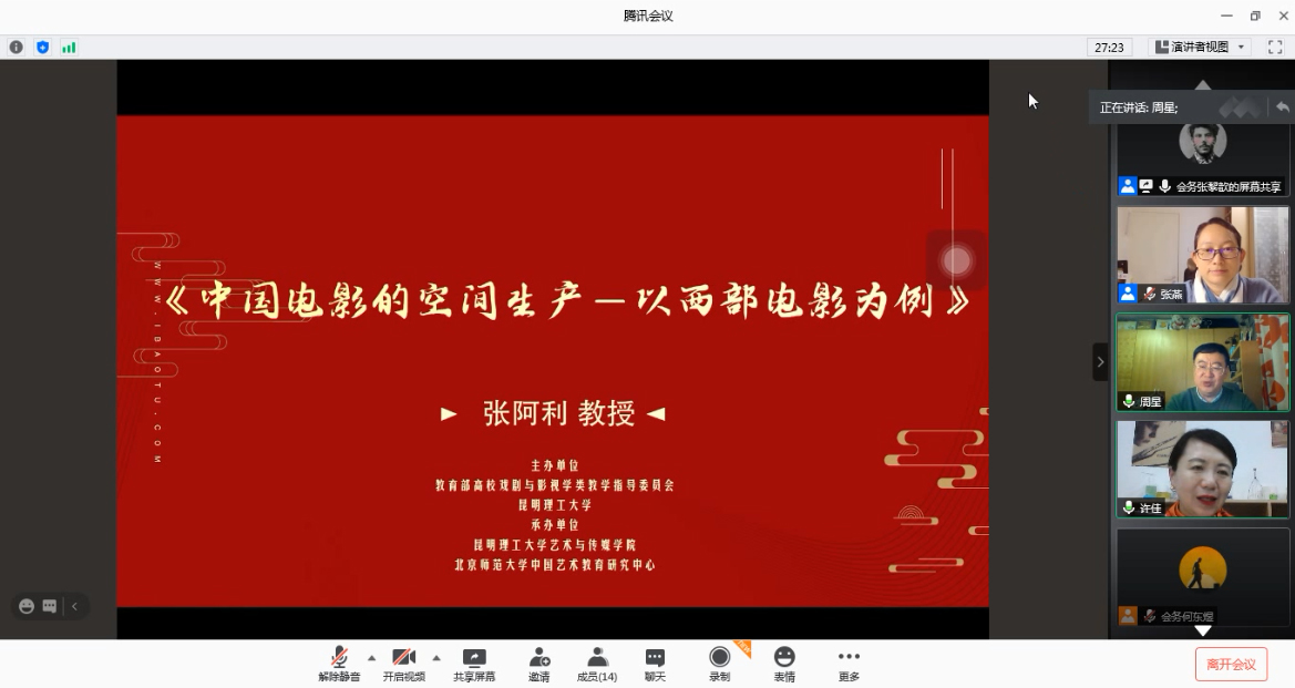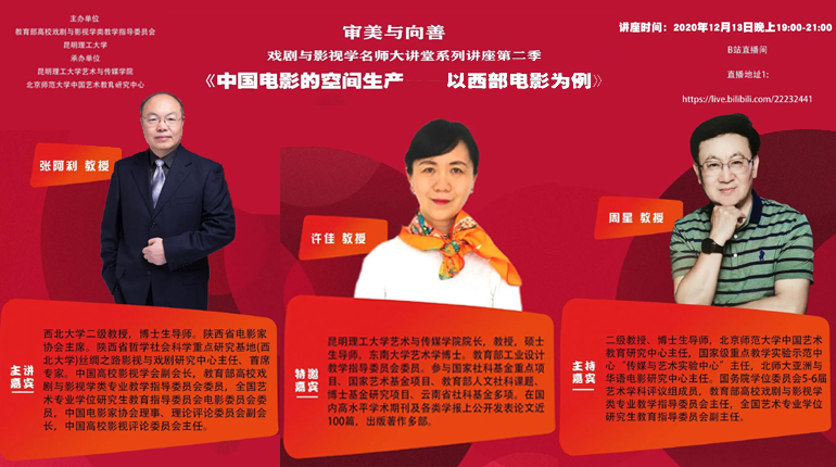 和北京师范大学中国艺术教育研究中心承办的“审美与向善:戏剧与影视学名师大讲堂系列讲座第二季”第四讲“中国电影的空间生产——以西部电影为例”以在线讲座形式开讲。