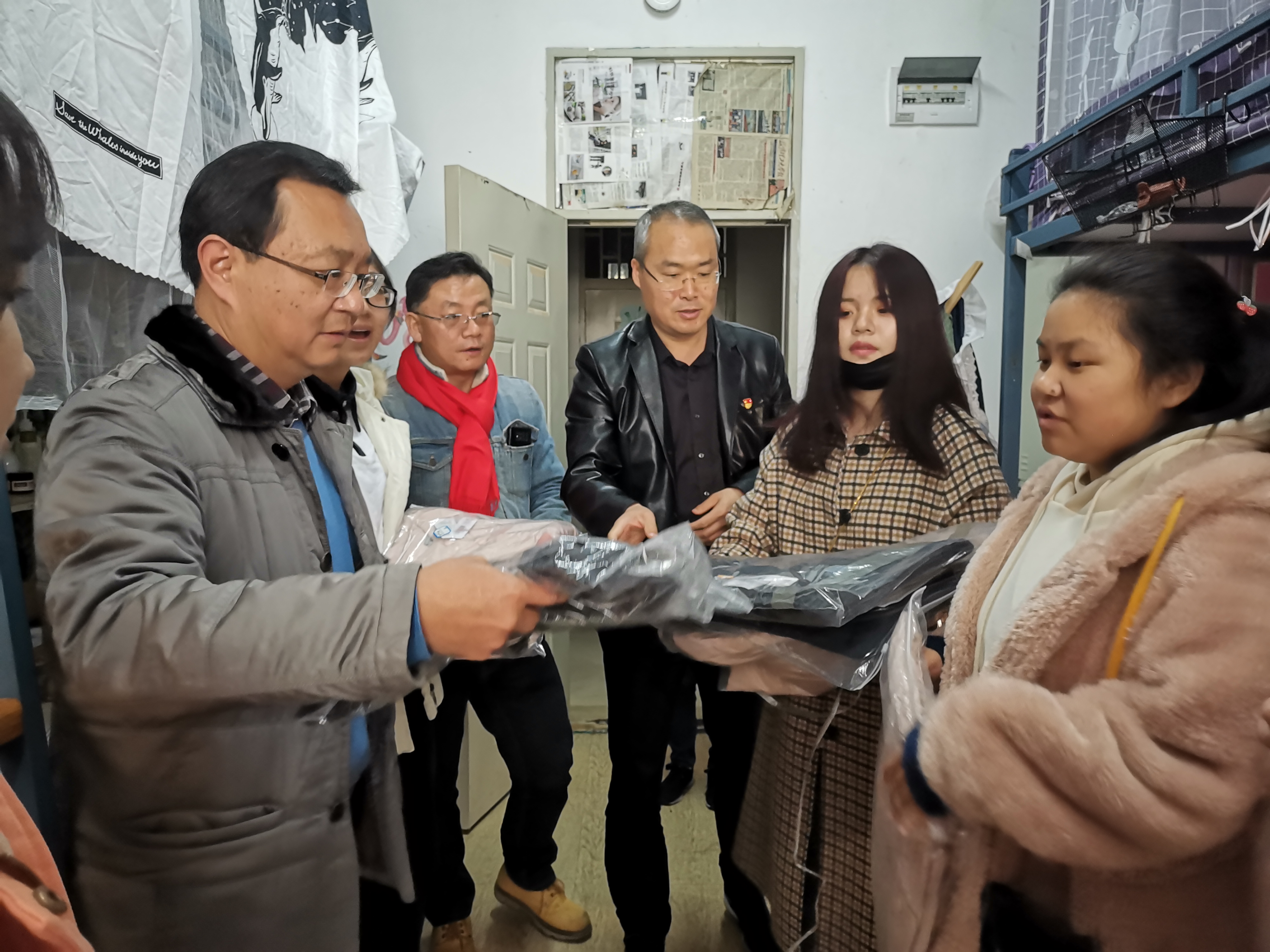 在寒冷的冬季,学院给2019级家庭经济困难学生们送上温暖的冬衣,希望能温暖到同学们。学院领导来到宿舍看望同学们,用亲切温暖的话语鼓励同学们积极乐观、努力学习、不断进步。
