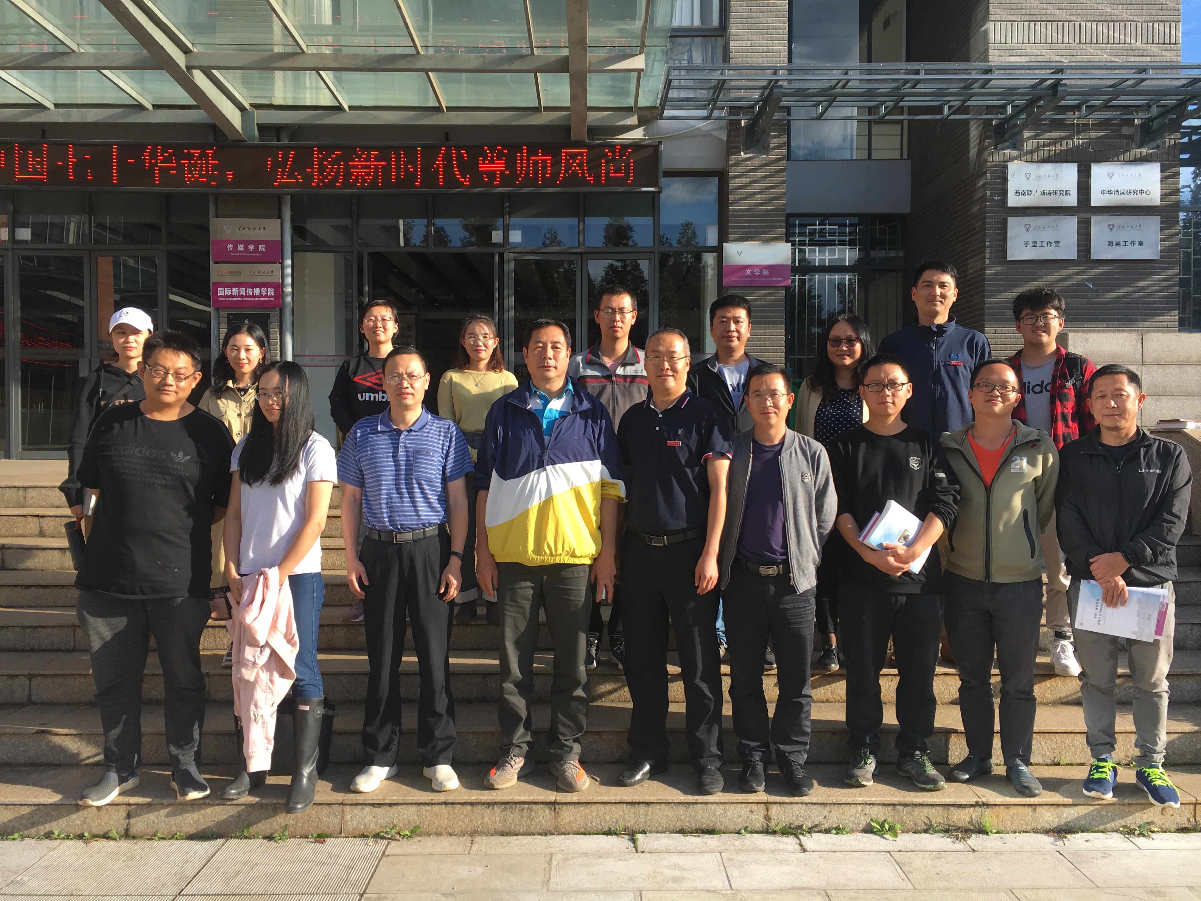 王勇、张建国、严波等学院领导及学工办、教务办、实验展示中心负责人等一行8人到云南师范大学传媒学院参观访问,并与云南师范大学传媒学院熊永翔院长、周芸副院长及其相关部门的负责人就本科生导师制、实践教学改革和实验室管理等工作进行了座谈交流。