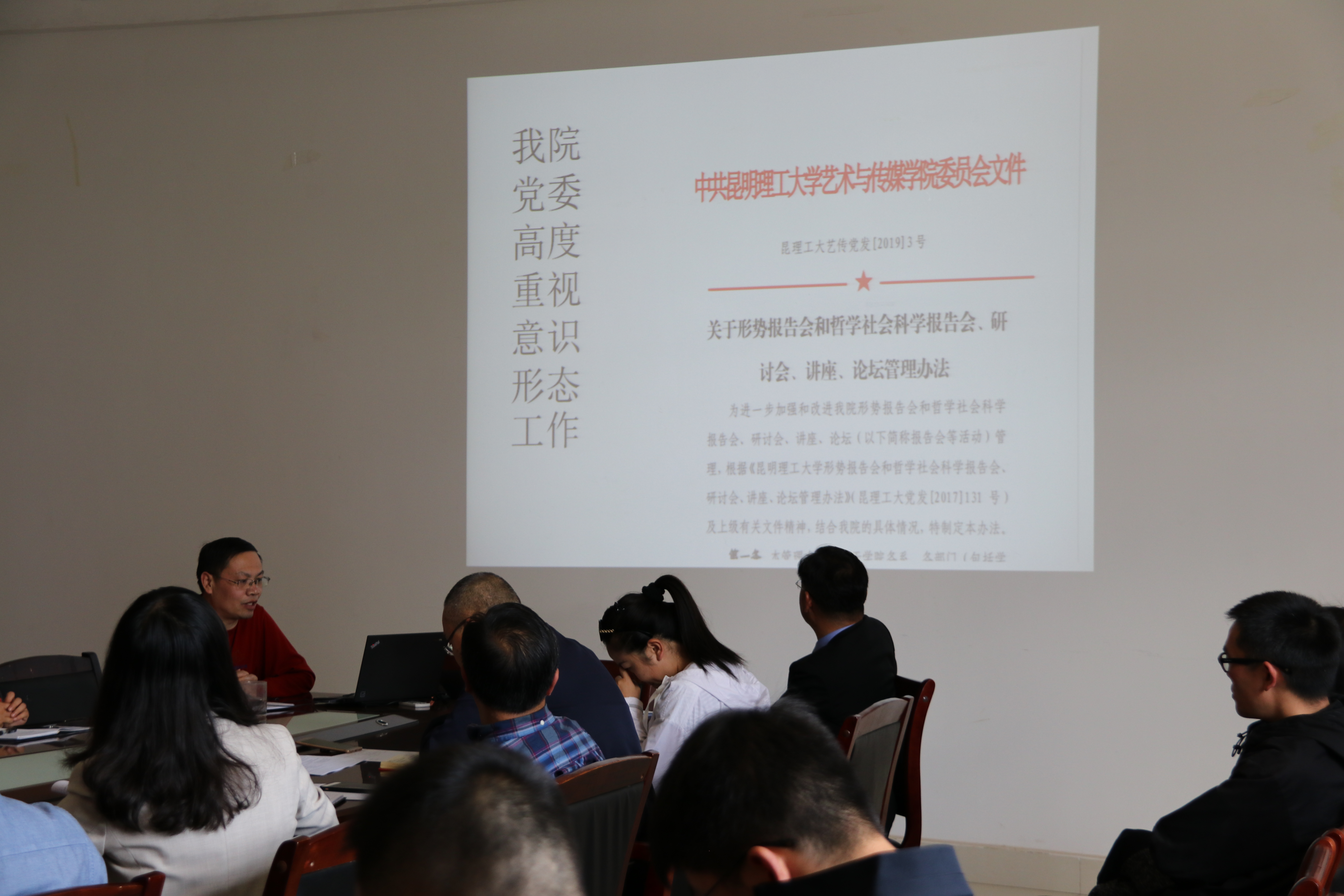 2019年学院宣传思想和意识形态工作会在学院209会议室召开,全院教职工参加了会议,张建国副院长主持了会议。会上,王勇副院长对宣传思想和意识形态工作进行总结部署,并结合实际案例,分析了宣传思想和意识形态工作任务的艰巨性和严肃性。他转达了学校党委有关宣传思想和意识形态的会议精神,要求全体师生狠抓落实、做好四方面工作:一是深入推进习近平新时代中国特色社会主义思想学习宣传贯彻,树牢“四个意识”,坚定“四个自信”,做到“两个维护”;二是严格落实意识形态工作责任制,切实做到守土有责、守土负责、守土尽责;三是聚焦落实立德树人根本任务,提高思想政治工作质量;四是做大做强正面宣传,凝聚全校师生同心同德、团结奋进的信念信心。