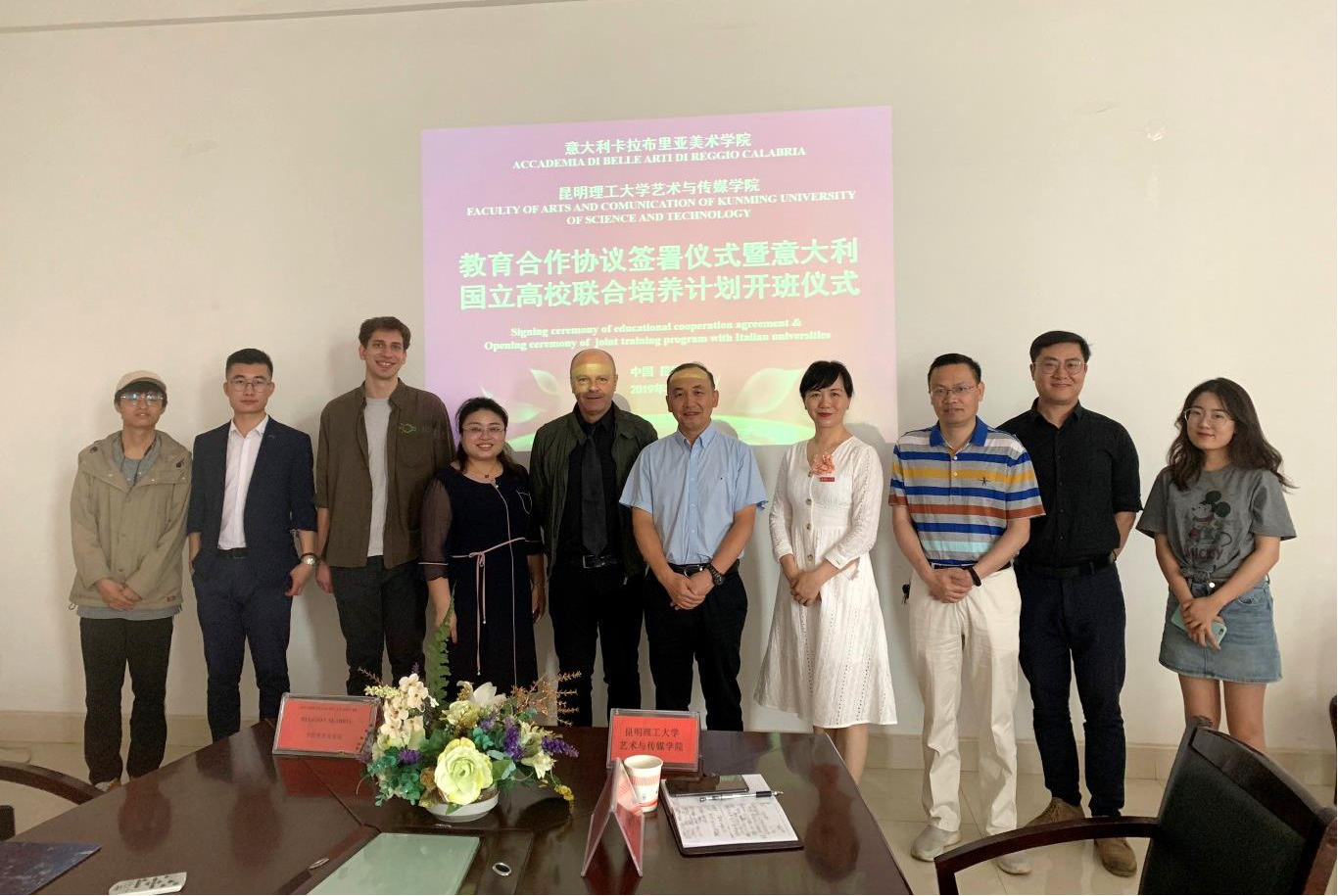 周峰越副校长代表校方对远道而来的意大利卡拉布里亚美术学院Francesco Scialò院长、泓钰学校王传秀校长、意大利语外教Tommaso Toccacieli先生、意大利语翻译官肖平步先生表示热烈欢迎。在听取了王校长对于中意两国在教育合作领域中所取得的成绩后表示,韩国AV