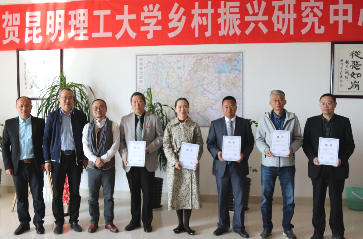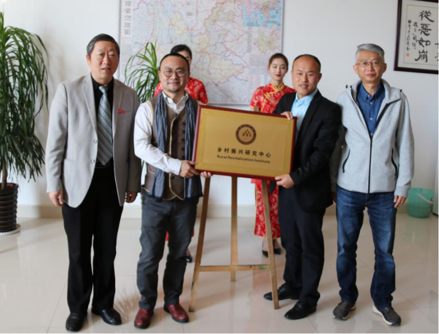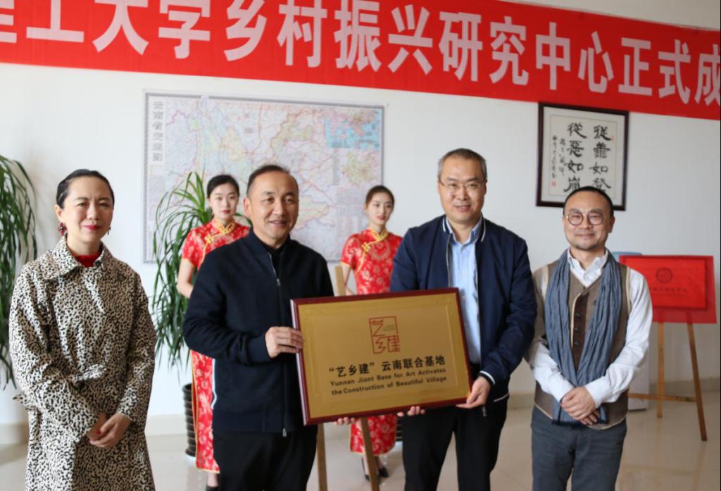 云南省人民政府投资项目审批中心正高级工程师吕浩处长,昆明理工大学建筑与城市规划学院副院长杨大禹,中国人民大学“艺乡建”团队负责人陈炯,艺传与传媒学院环境设计系主任钟晖共同为乡村振兴研究中心授牌。