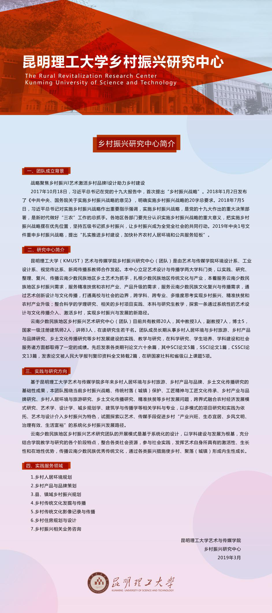 乡村振兴研究中心立足艺术设计与新闻传播两大学科门类,以实践研究、整理复兴、传播云南少数民族地区乡土艺术为抓手,扎根少数民族地区传统文化与产业,服务云南少数民族地区乡村振兴需求,为云南的新农村建设、乡村振兴做出独特的贡献。