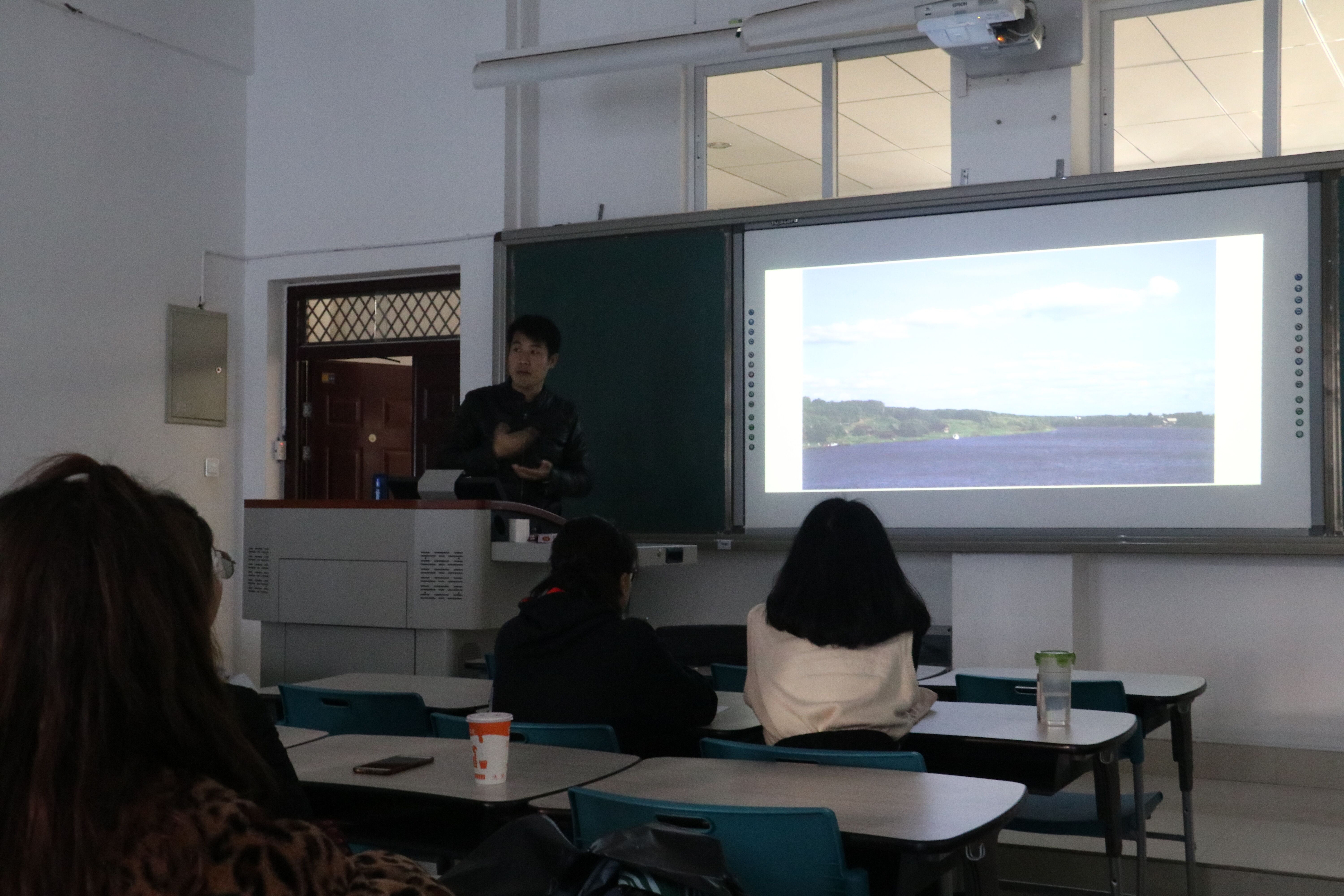 孙红德老师工作坊活动分为两部分,上午主题报告,通过对俄罗斯风景油画写生的体验,流派的发展和诗性的精神追求等层面与学生进行交流。下午孙老师在工作室以现场绘画的方式直观地演示了油画风景的操作步骤,并对工具材料特性和画面经营等方面为前来观看的学生进行答疑解惑,现场气氛活跃。