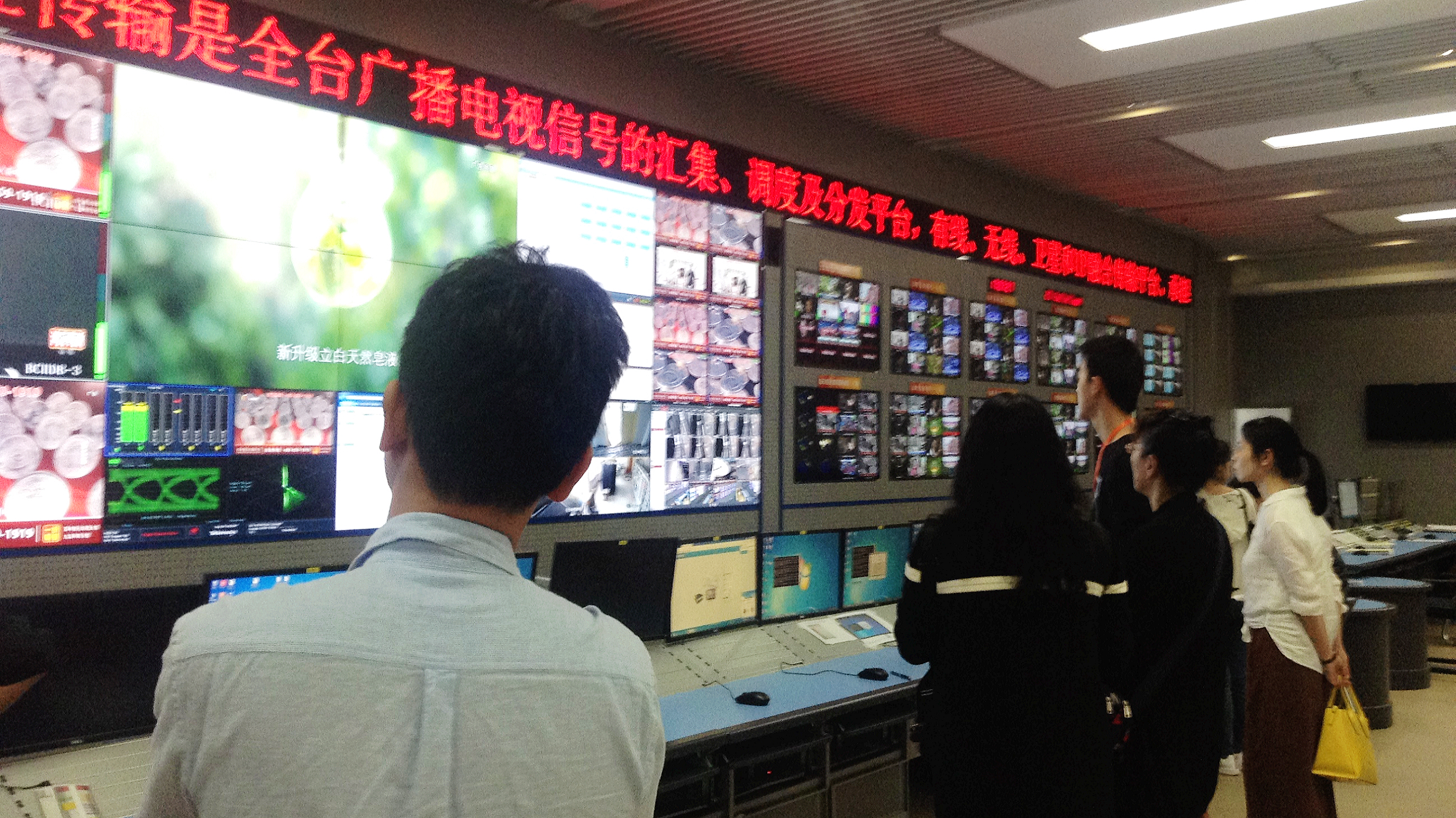 在金彩影业副总经理钱虹宇等人陪同下,老师们相继参观了全景声审片厅、电视总控机房和电视播出机房,体验了360°杜比声画效果呈现的金彩影业历年佳作,了解了全省广电网络的覆盖情况及电视台日常节目播出技术、方式等。随后,双方更就“新闻学院共建”实施中,如何在人才培养模式、师资业务提升、专业特色打造等方面,始终与国家发展目标保持一致,建设好社会思想和信息传播教育研究的前沿阵地,向社会输送拥有合乎时代进步要求的技能知识的学子等话题进行了讨论,并达成共识。
