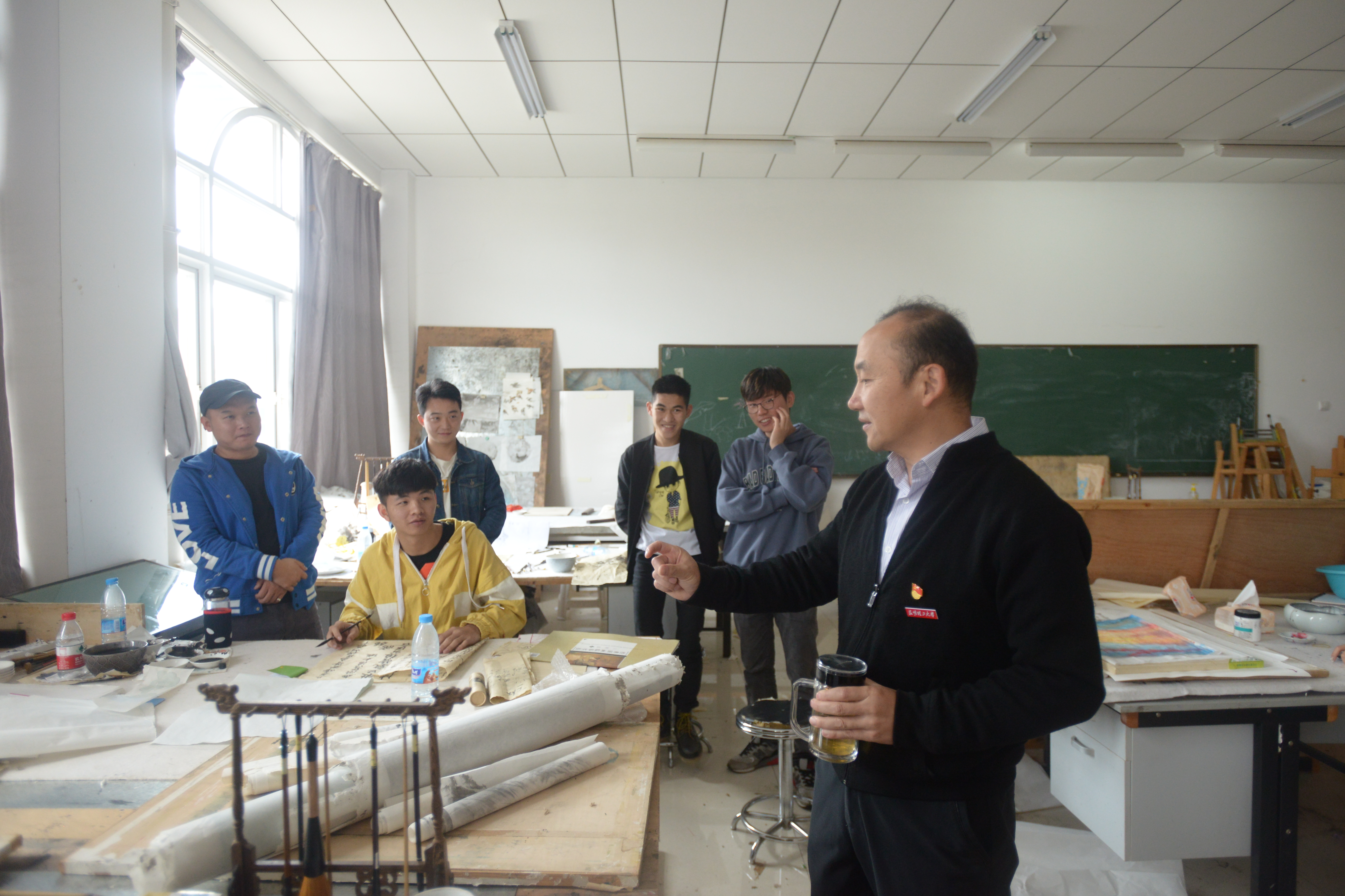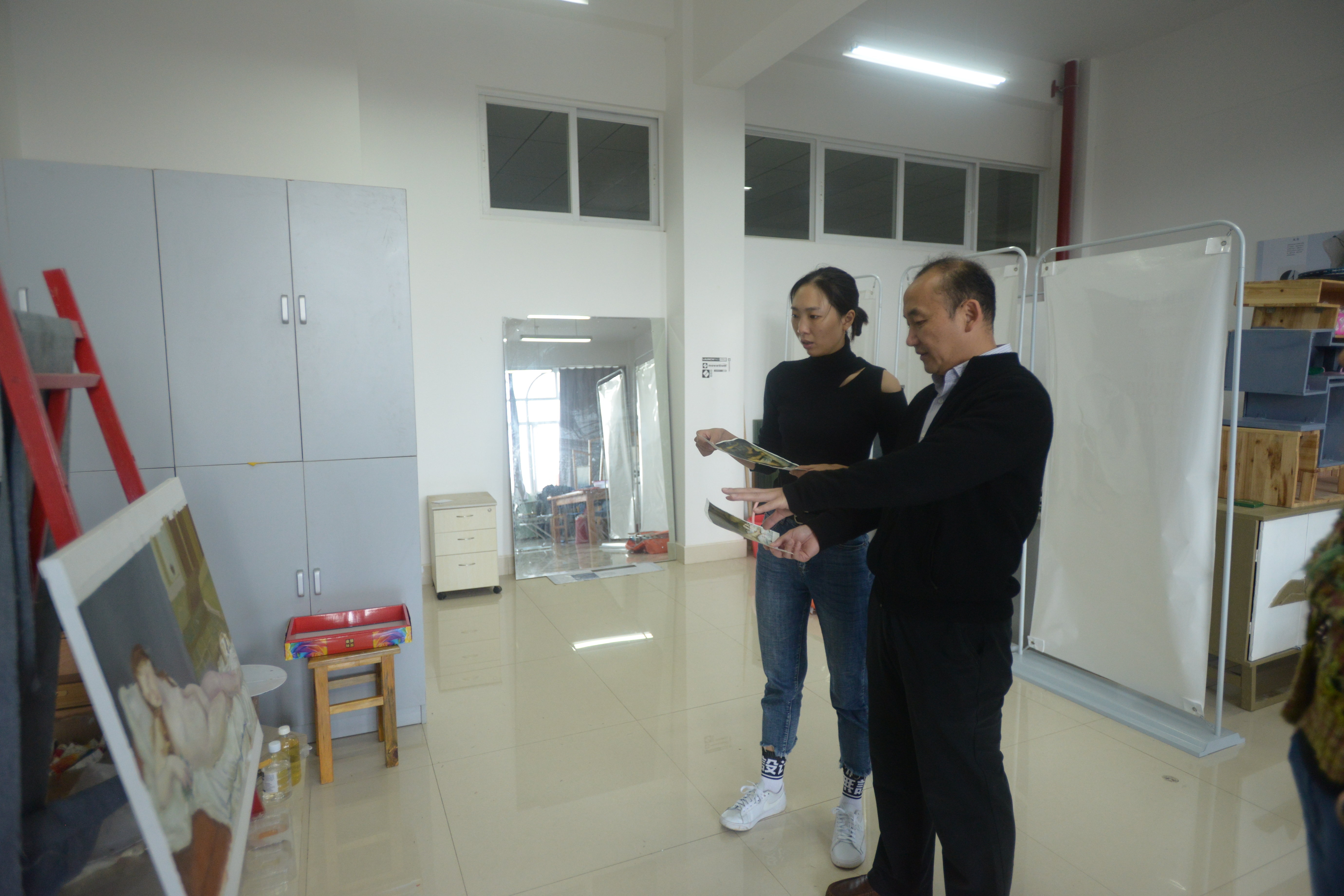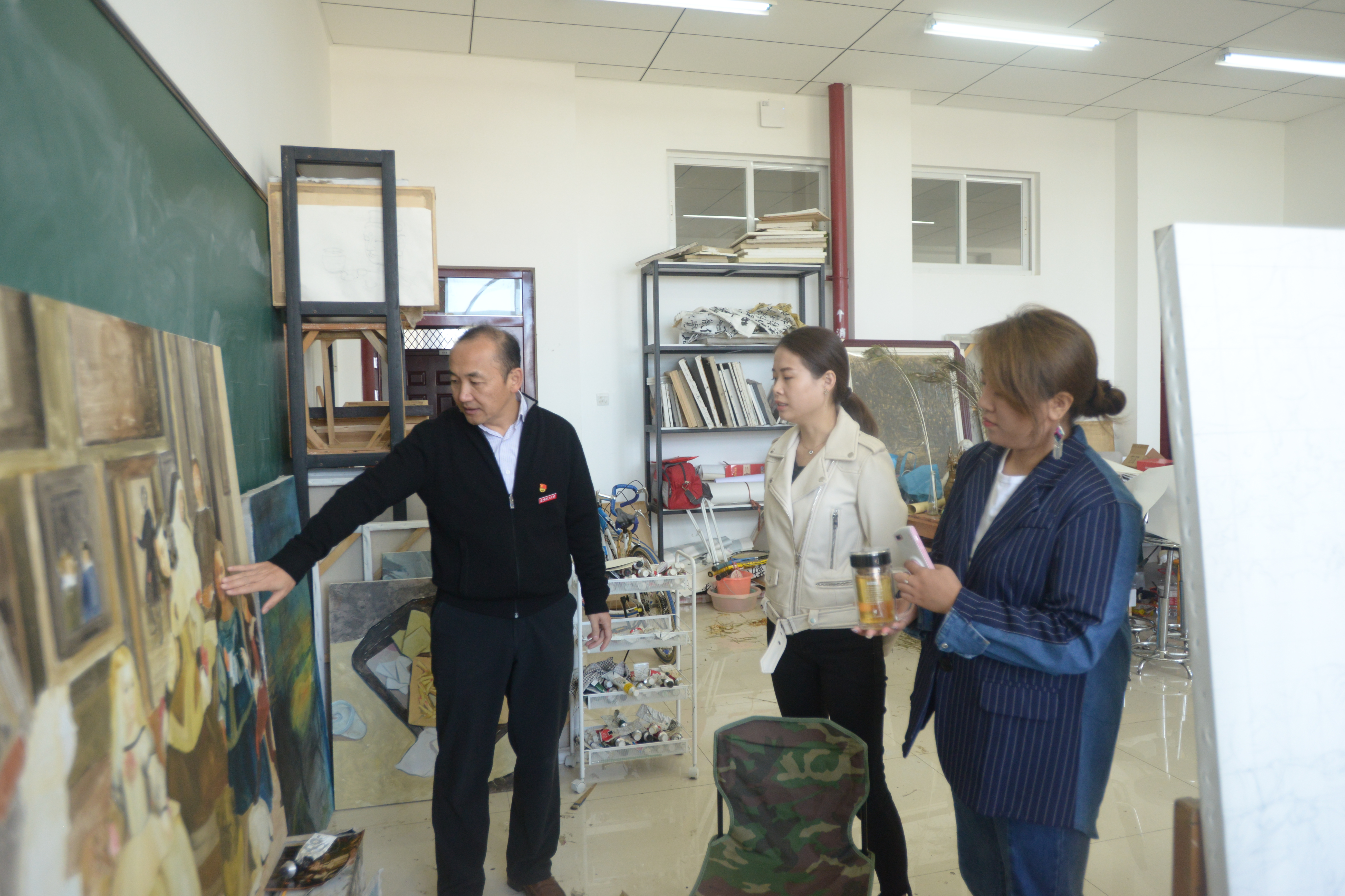 周副校长先后查看了杨璐、周祎德、都江、田野、王坤茜等导师的工作室,以及美术专业研究生画室,了解询问导师的教学和学生的学习情况。在研究生画室,周副校长在每幅作品前仔细观看,并详细询问创作的初衷、主题和技法表现,深入地分析作品的优点、不足,建议学生平时多临摹经典名作,打牢基本功。