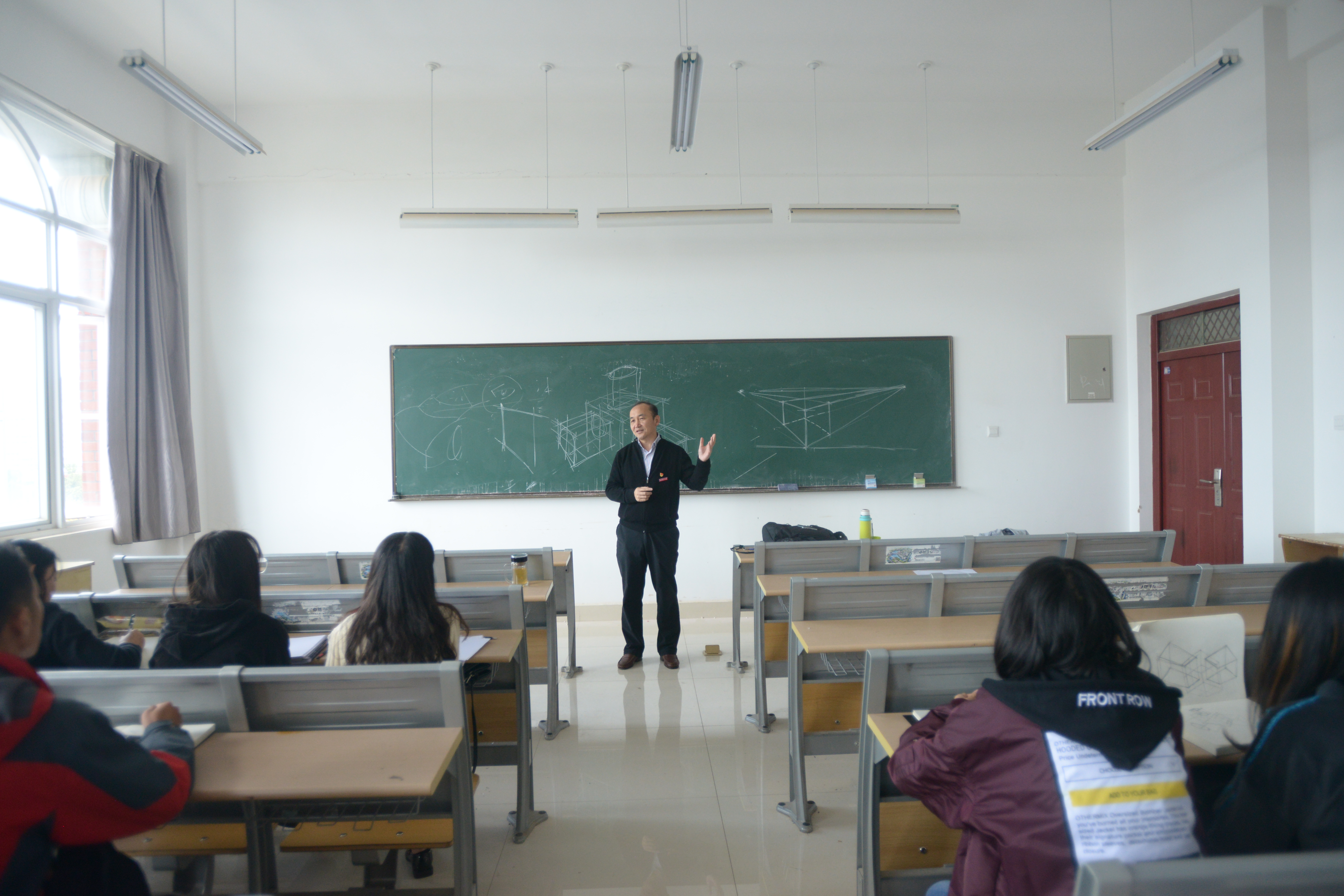 随后,周副校长走进了工业设计系张瑞副教授为本科生上的《产品设计》课堂、美术系王振东老师为本科生上的《表现技法》课程。向任课教师了解学生出勤情况和教学内容,向学生了解学习情况,嘱咐老师们要认真上好课,学生们要认真听好课。
