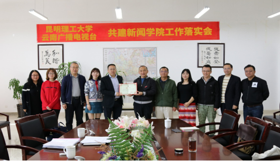 与云南省广播电视台共建新闻学院工作落实会。我校周峰越副校长,云南广电传媒集团公司副总经理、金彩影业董事长杨于明出席。