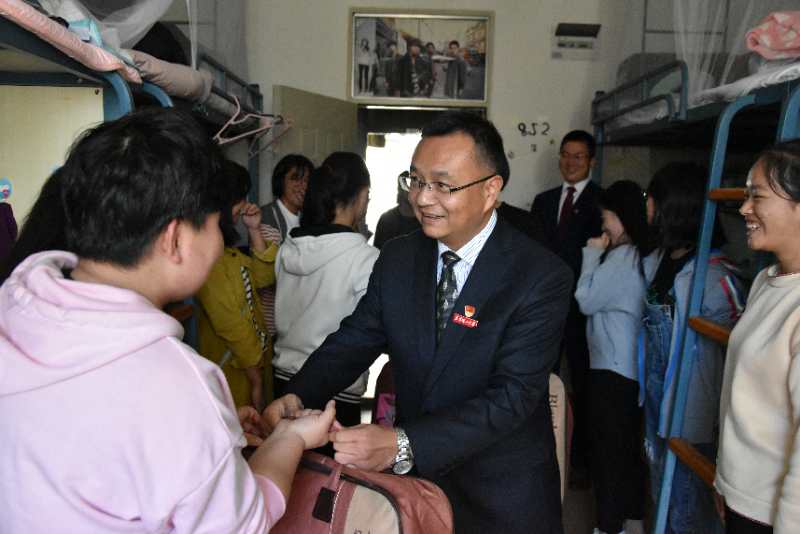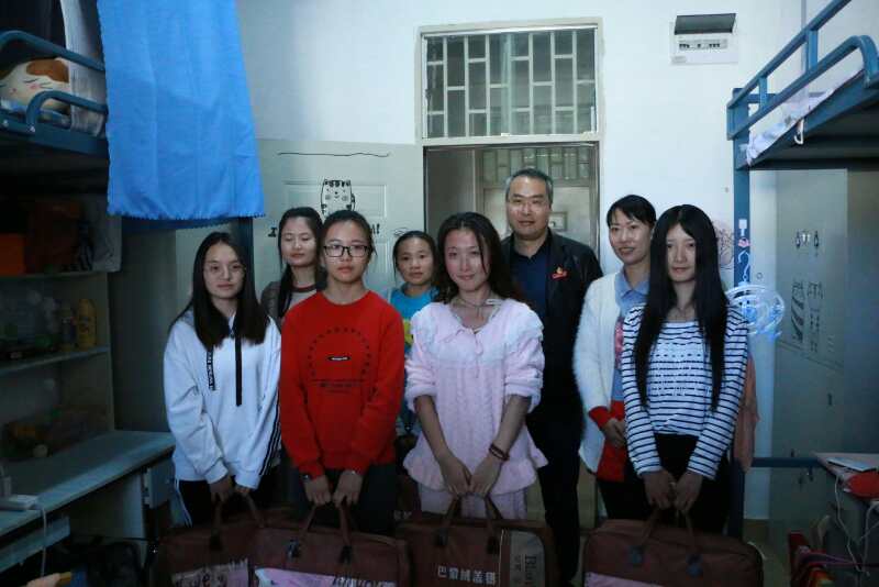 学院领导在走访宿舍的过程中,亲切的关心、问候了同学们的学习和生活情况,能不能适应大学学习和昆明的生活习惯。同学们对院领导的慰问表示十分的感动,尤其是第一次离家远行来昆求学的同学更是感受到家人般的温暖。领导们还对经济困难生进行引导和鼓励,希望这床毛毯,不仅能帮学生们抵御寒冷,更能够给同学们带去力量和希望!不畏困难,努力学习,自强不息,充满自信,既要仰望天空,又能脚踏实地。