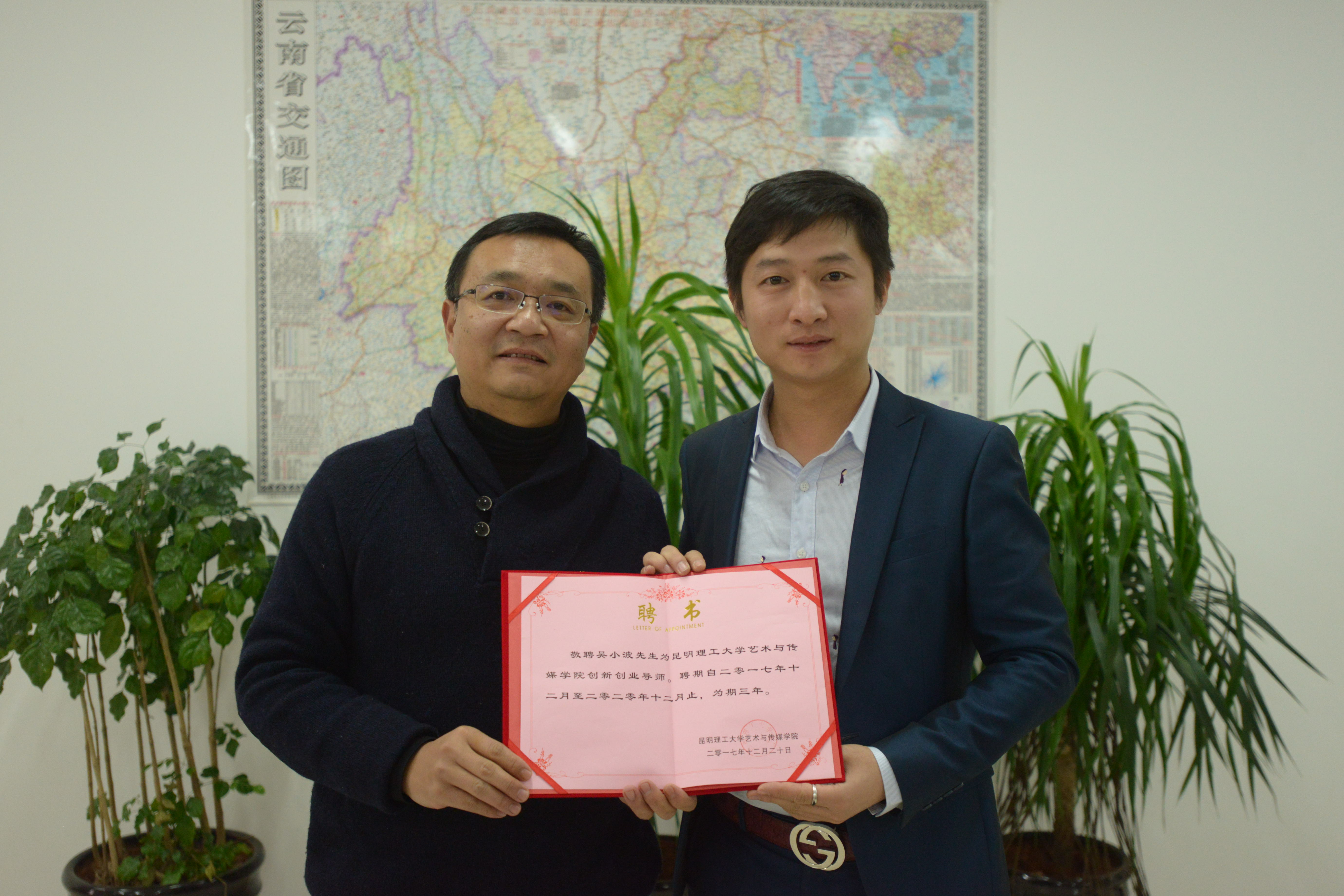 创新创业导师”聘书,感谢艺卓集团给艺传学子带来学习和生活上的帮助,希望获奖学生以吴小波董事长为榜样,希望同学们做到:一是懂的感恩,感恩父母的养育之恩,感恩老师传道授业解惑,感恩同学四年的互帮互助之情;二是学会学习,学习方法的把握;三是学以致用,天道酬勤,勤能补拙。最后预祝同学继续努力,取得更加优异的成绩。