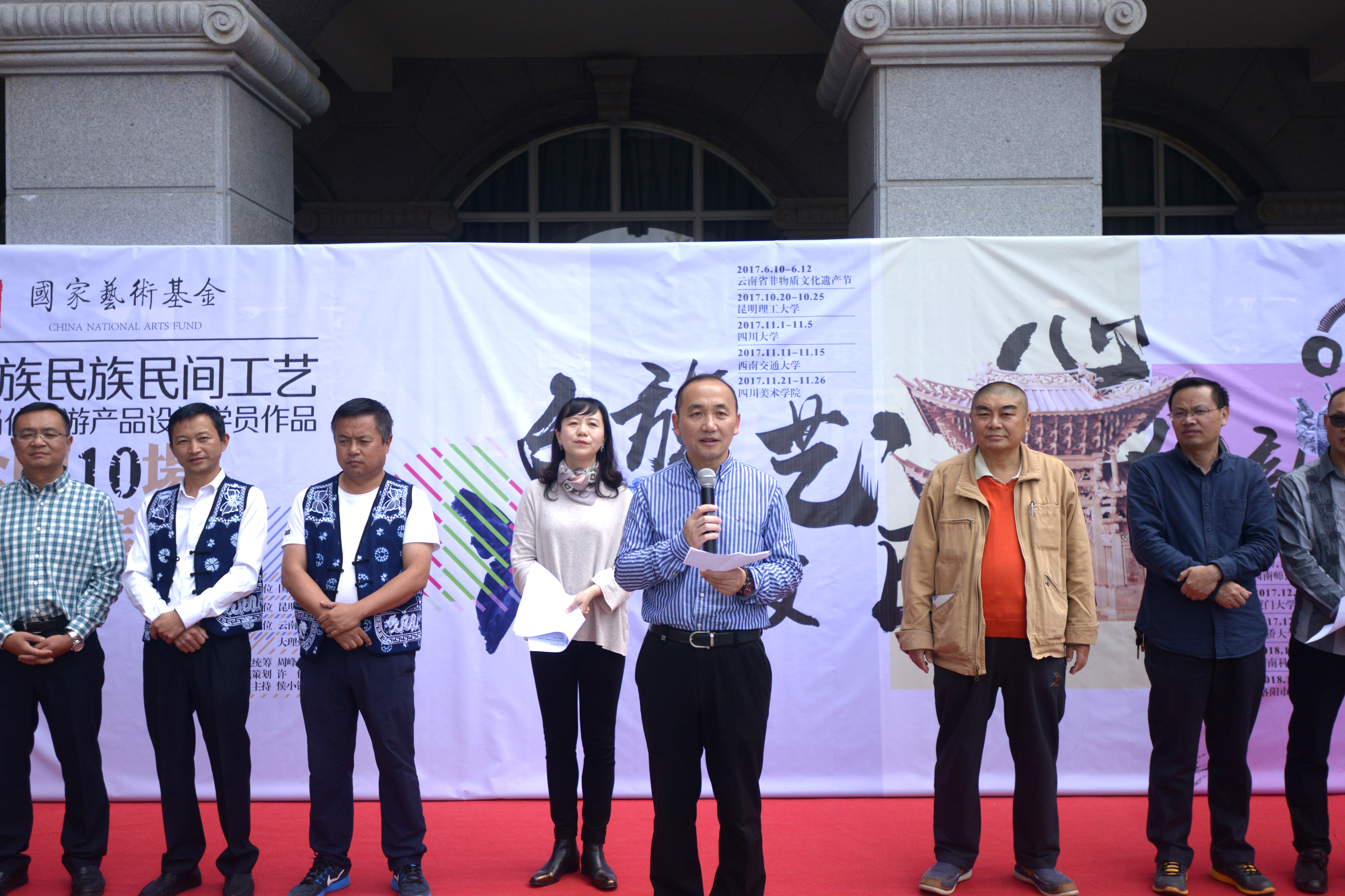 副校长周峰越宣布展览开幕并致辞。中国民族工艺美术大师、云南省非物质文化遗产代表性传承人段四兴先生和段树坤先生以及学校各职能部门领导应邀出席此次展览开幕。