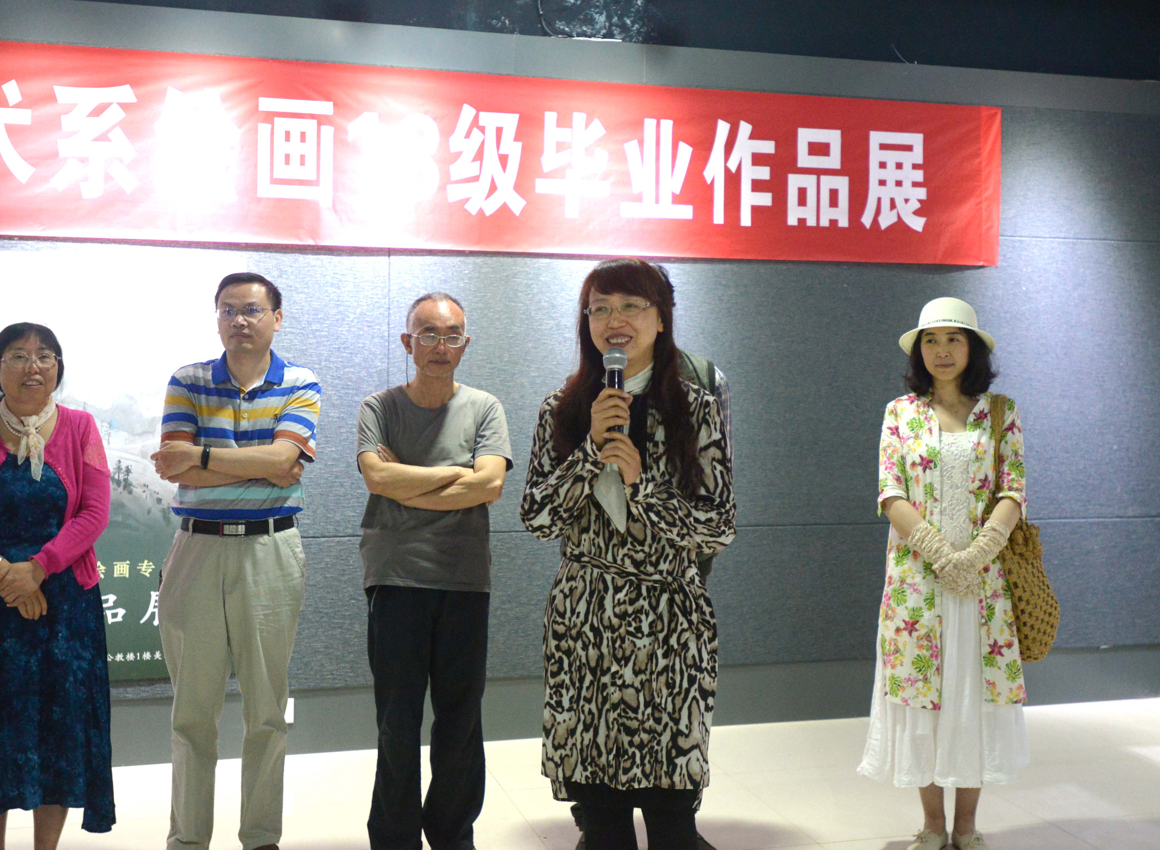 的骄傲。美术系主任杨剑颖老师给毕业班的学生做了简短的寄语,真诚地希望同学们在今后的工作生活中继续坚持绘画创作,用艺术的技能、知识不断提升自身修养。毕业班班主任陈艳博士也对学生四年学习生涯做了形象地总结,并再次阐述了画展命题——“巡青”的含义,寓意学生入学之初,从青涩迷茫的状态步入丹青世界,一步步走来,到今天已逐渐成熟,期望今后能青出于蓝胜于蓝。王海云教授也从人文精神的角度热情地肯定了同学们的艺术创作,同时宣布本次画展正式开幕!