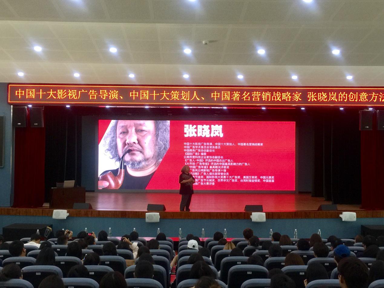 邀请张晓岚先生在小剧场给学生传授创意方法,学院部分老师,视觉传达设计、数字媒体艺术、广告学、编辑出版学等四个专业的学生以及设计学研究生共300人聆听了讲座。