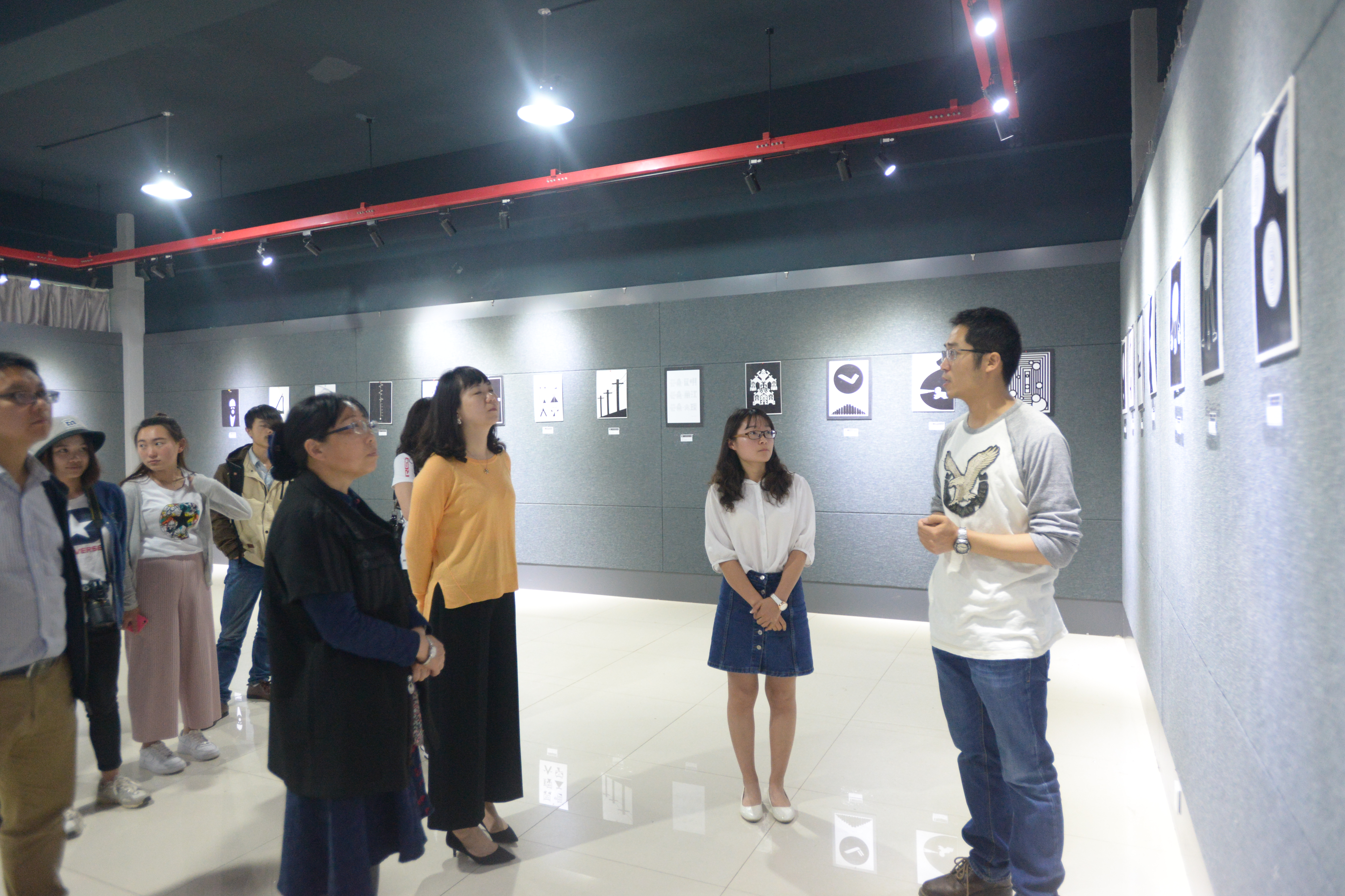 党委书记苏峰、院长许佳、副院长王勇、副院长张建国、院长助理崔颖,在学院美术馆参观了吴中昊工作坊学生作品展览,视觉传达系主任喻丽以及指导老师杨吟川、部分作品作者陪同参观。此次展览共展出108幅设计作品。