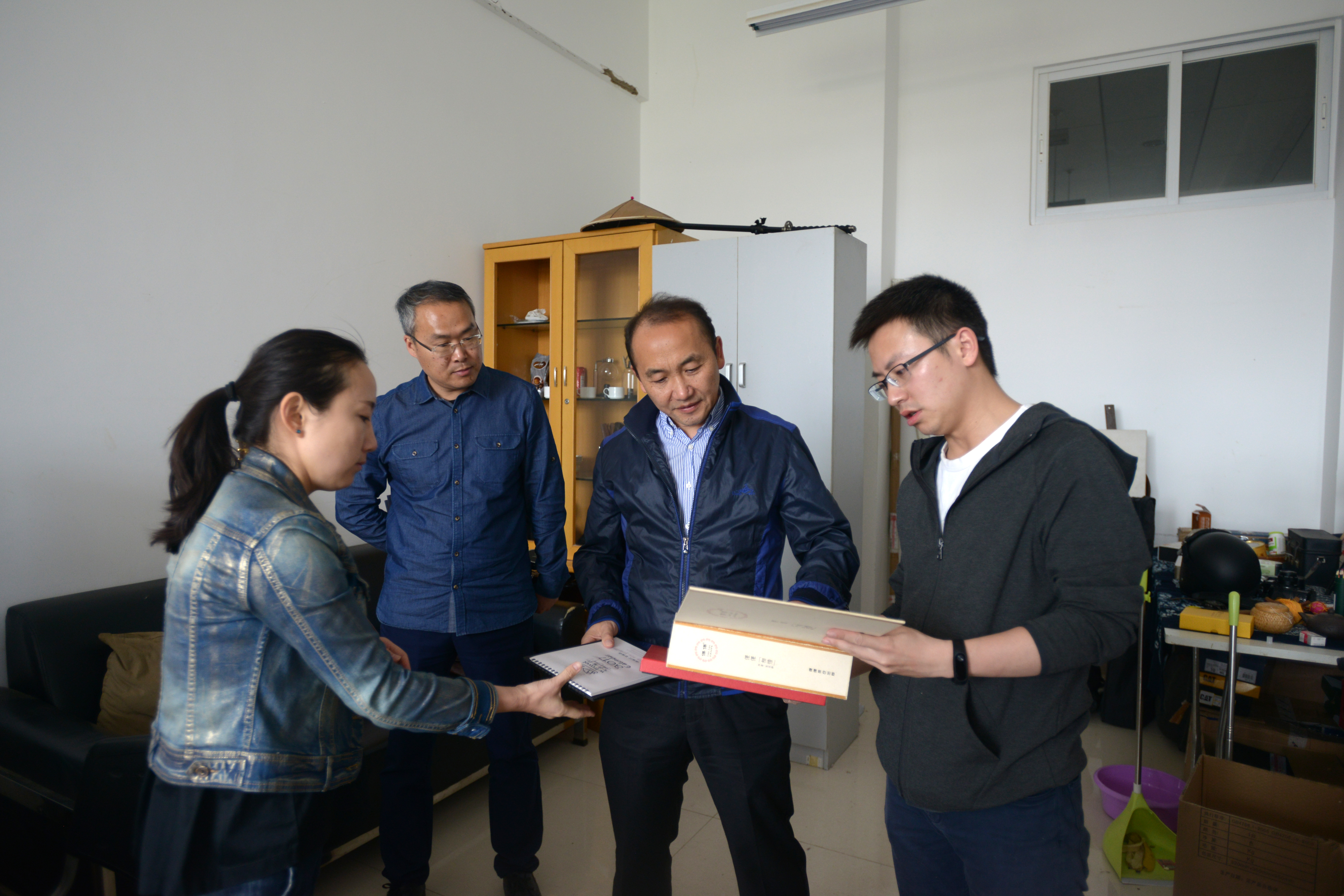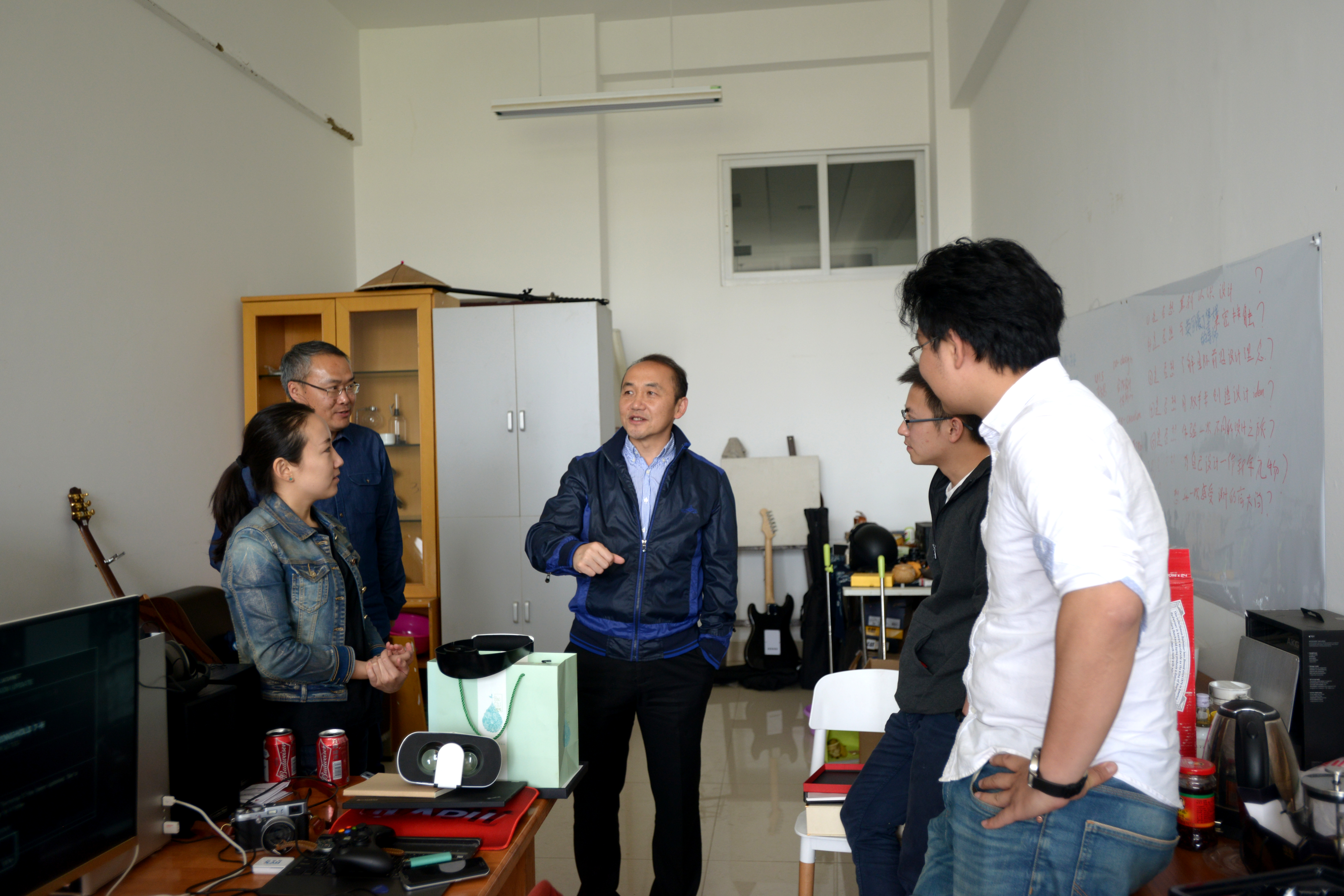 在工业设计系周祎德博士工作室,周副校长仔细欣赏周老师、视觉传达设计系李硕博士指导的学生作品,并亲切与师生交流,交流了产品设计的现状与发展、云南高校设计学科发展的情况。