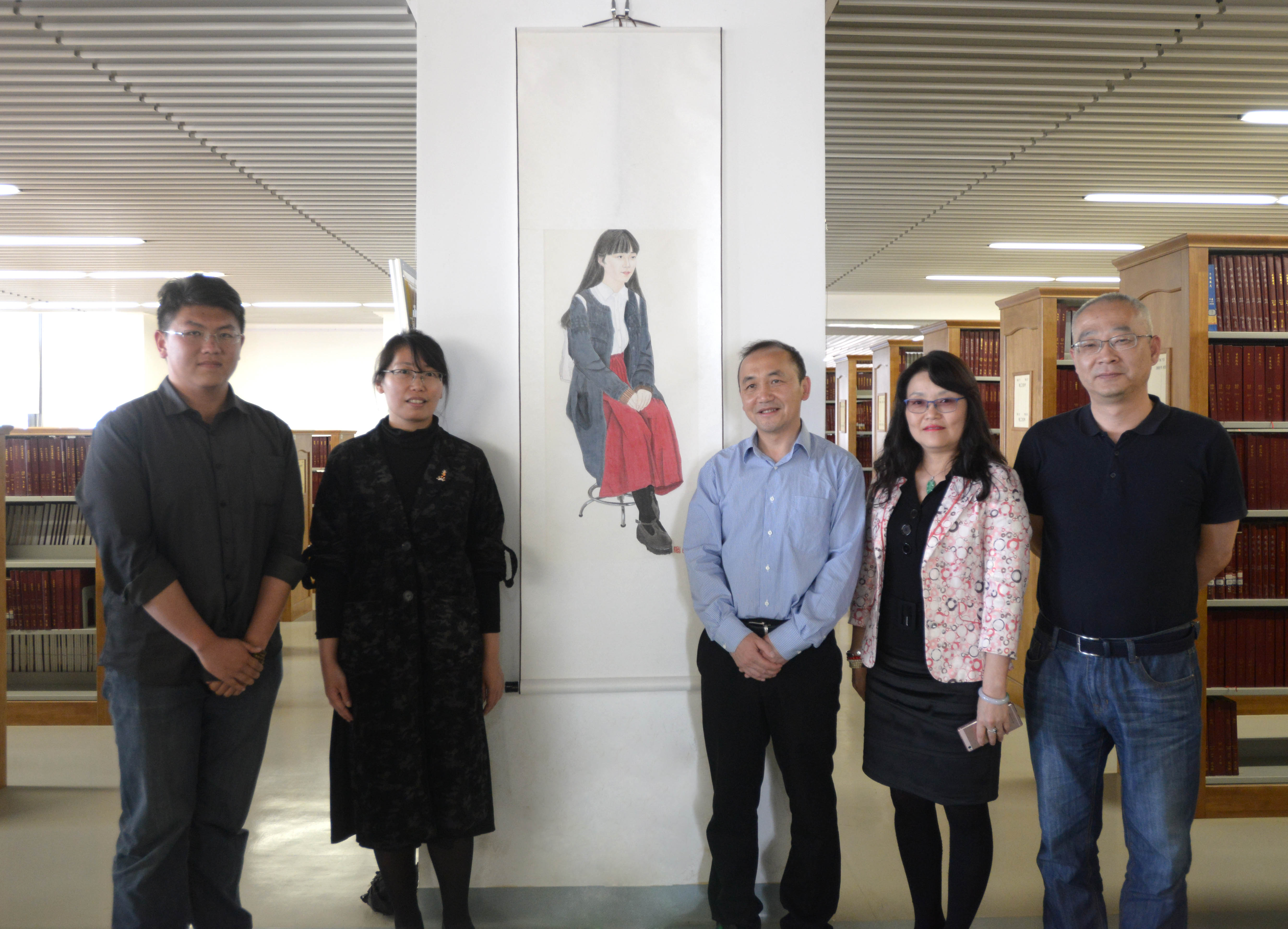 与校图书馆合力营造校园艺术氛围,自2017年3月起,艺传院美术系精选了58幅作品悬挂在图书馆二楼大厅及走廊。短短不到两月,艺传院美术系王振冬老师的一幅作品被我校经管院郑毅同学购买收藏。2017年5月5日下午3点,周副校长百忙之中到图书馆与作品作者、收藏同学交流。