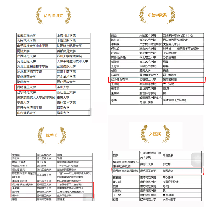 侯小锋老师、杨吟川老师和学生的作品分别荣获1个米兰学院奖、4个优秀奖和1个入围奖,这是我国西部地区高校的最好成绩。