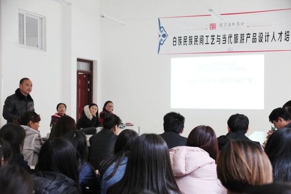 2016年度国家艺术基金《白族民族民间工艺与当代旅游产品设计人才培养》项目培训的学员开始进入正式的授课培训,培训的第一个专题,是我校副校长周峰越博士的《美学与当代旅游产业》。