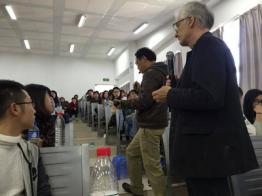 讲座在浓浓的学术氛围中到了最激动的时刻,就是与罗伯特·瑟克尔互动。我院学生都表现出了极高的热情参与提问。问题接踵而至,从“国外纪录片有较多称拍到了鬼魂和超自然力,到底是否真实?”到“对于中国的纪录片的意见和看法”。罗伯特·瑟克尔都做出了专业而幽默的回答,称中国纪录片名人元素较多,将会向平民化方向过渡。他还为即将从事电视行业的学生提供了许多建设性的意见。其亲切、专业、幽默都彰显了一个顶级电视创作者的人格魅力。讲座最后,资深纪录片创作者赵文忠老师特别指出,电视创作人的第一素养就是要多问多谈多听,善于从琐碎的生活中发现创作亮点,积累创作灵感。
