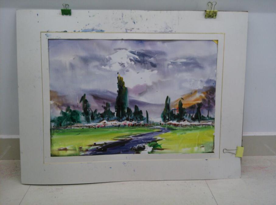 屠教授首先作了精彩的现场绘画示范,他快速、精准地运笔,在短短十多分钟内就一气呵成,画完了一幅风景画,让师生领略到水彩画明快灵动的艺术魅力。