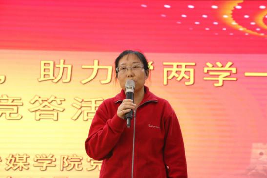 苏峰书记为竞赛致辞,她以令人印象深刻的三个期望向党员发起号召。她说:“通过学习党章党规,坚定理想信念。学习党章党规使党员更加理解历史和时代赋予的责任,坚定信念,勇于担当。”她接着说:“希望同学和老师加强廉洁党风的建设,提高自身修养。”最后,她希望广大党员自觉落实行动,践行党员宗旨,不仅做合格党员,更做优秀党员。