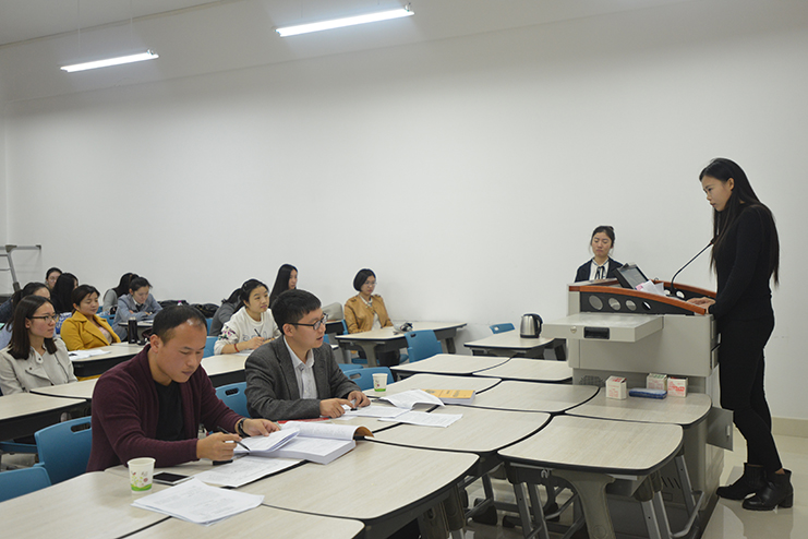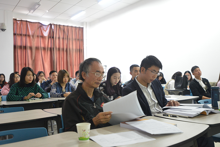 共有11名研究生带来了自己的论文。首先,由每位同学从作品或论文选题、结构、创新点等方面进行了PPT陈述,随后,点评嘉宾对同学们的论文进行了点评。四位点评嘉宾都是在学术研究和教学领域有很高的造诣的教授、博士,他们认真了解每位同学的作品和论文,针对具体的问题,提出了很多有见地的看法和中肯的修改意见。讲台上的研究生讲得绘声绘色,台下的老师和同学听得认真仔细,老师的点评让同学们眼界大开,师生还围绕选题进行了深入的交流,会场氛围热烈而融洽。