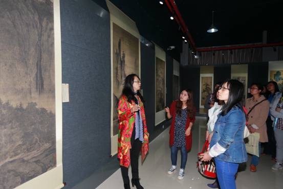 院长许佳博士,带领30多名会员观赏书画展,美术系陈艳博士现场做了《游于艺·中国古代书画精品欣赏》讲座。陈艳老师是中国人民大学艺术学院、哲学院博士,专门从事明清书画与中西视觉艺术研究。陈老师一幅一幅地为大家讲述蕴含在书画中的奥妙和作品背后的故事,从《兰亭序》到清明上河图、从赵孟頫到张大千,陈老师带领大家游阅于书画构成的山水佳境之中,体会过往书画名家的心境意地。30多位女老师随同陈艳博士一同感受国宝级书画作品的文化内涵,在心灵和精神上得到闲暇和放松。会长许佳院长希望通过这次讲座,加深我校女高级知识分子间的相互了解、增进学科间的交流和沟通;另一方面也通过类似的活动,展现我校女高级知识分子的风采,增强大家的文化涵养。