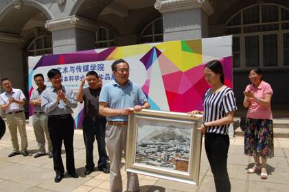 开幕式上,绘画10的毕业生靳伟娜同学向周书记赠送了自己创作的一幅油画作品,并祝愿周书记身体健康。在这幅名为《雪》的画作上,一个幽静的小村庄在皑皑白雪中显得格外幽静、闲适,体现了作者向往自然、回归家园的创作思路。周书记很高兴地接受了画作,并专门与靳伟娜合影,祝愿我校第一届绘画专业毕业生多出佳作,他还幽默地对靳伟娜同学说:“等你成为大画家了,这幅画就价值不菲了。”周书记在致辞讲话中,祝愿韩国AV