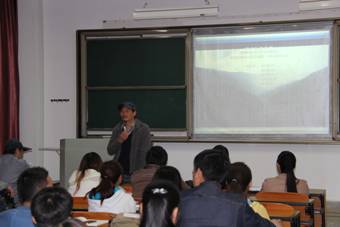 讲座先以他创造的微电影《耕牛》和记录片《依果》的放映开始,在全片播完两个影视作品后,与参与座谈的新闻传播系老师和同学开始交流和互动。他先从微电影的题材特色出发分析了《耕牛》作品的创作特色和社会寓意,阐发的是现代社会在科技进步中传统社会角色和社会关系的逐渐消失,牛作为一种传统的社会关系符号在现代化的进程中的逐渐消亡和被异化,试图唤起人们对传统文化的珍视和敬仰,有意维护中国各族人们的传统生活环境和文化纽带。接着又从记录片创作的现实性、真实性和震撼性的角度分析了纪录片纪录片《依果》的创作历程、参访经历和拍摄技巧,强调了记录片的现实底色和真实属性,讲解了记录片采访拍摄中与人物的沟通和交流技巧。认为记录片的生命力在于透过现实人物的生存现状和生活现实来揭示一个群体的生命底色。