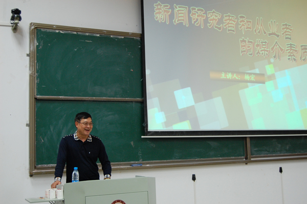 师生做题为“新闻研究者与从业者的媒介素质”的学术讲座。杨秘书长首先以自己的亲身经历介绍了在全球化背景下,我国的新闻传播和宣传方式发生的巨大变化;接着结合一个个的具体案例分析了当前我国的广播电视存在的问题;最后重点讲了在新形势下,新闻研究者和从业者应努力提高的政治素质和媒介素质。杨秘书长还现场回答了同学们提出的问题,并嘱咐同学们要好好学习,学好本领,为发展我国和云南的广播电视事业做贡献。