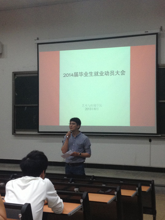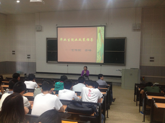 专职从事毕业生就业工作的郝儒梁老师结合往届特别是2009级学生就业情况,对同学就业、择业做了指导。郝老师巧妙地将就业比作找女友四步走——确定目标、相识、相处、作出决定。他强调,近年来本科生就业市场竞争激烈,就业压力普遍较大,加上结构性就业问题严重,与往年就业率相比,今年的就业招聘率下降了15%。但文化产业企业比重大幅上升,是目前就业需求的大方向,刚好和韩国AV