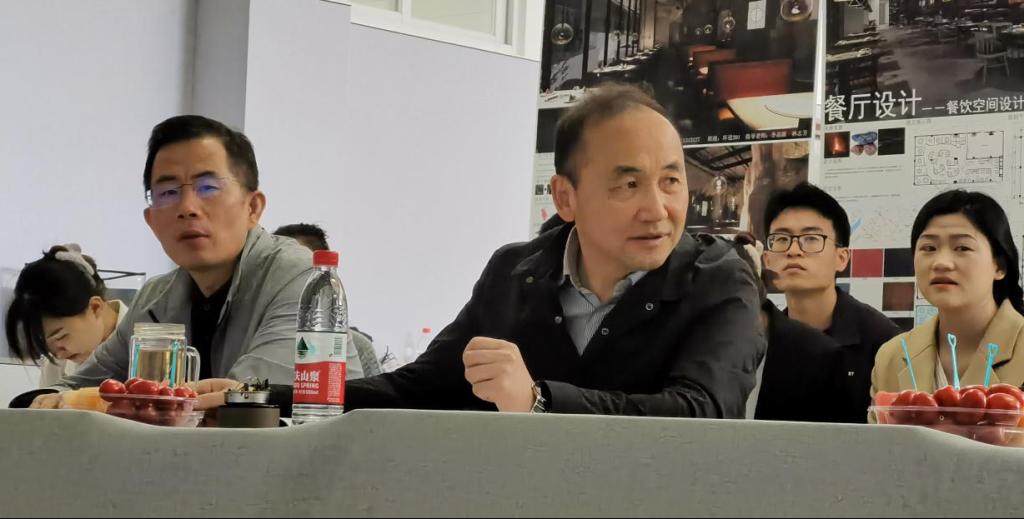 同天,按环境设计专业本科课程质量提升改革实施方案,本学期餐饮空间、酒店空间、广场景观、公园景观、地景规划等5门课程,进行期末跨校、行业教考分离评图工作,学院党委书记孙刚、副书记张祎颖、副院长张建国、云南大学张鹏杨、孟帅康博士及参加答辩行业专家等10余人,参与期末课程评图。