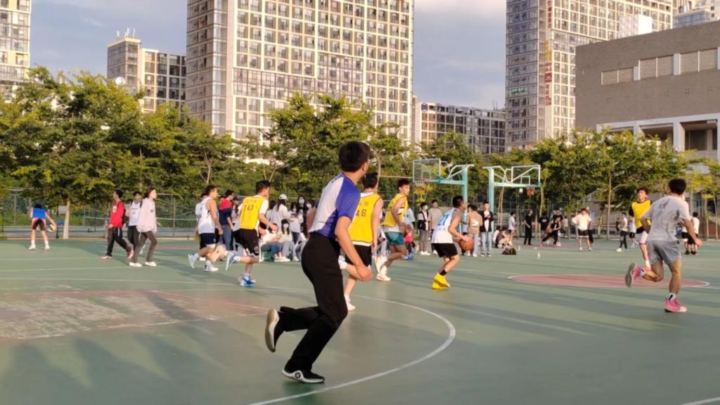 “迎新杯”篮球赛在怡园篮球场正式拉开序幕。此次比赛由四支队伍A1、A2、B1、B2组成,各班随机分配组队,由学院学生会体育部的相关人员进行赛事的组织规划以及现场秩序维护。