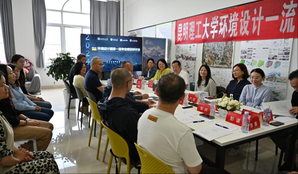 环境设计系主任钟晖介绍国家一流专业建设人才培养和阶段标志成果,经过30多年的积累发展,2020年获教育部国家一流本科专业建设点。环境设计专业立足学校工科优势,以云南类型多样的旅游资源为研究对象,围绕智慧文旅场景设计、高原人居环境提升设计、旅游景观数字设计等研究领域,推动文旅场景虚拟应用与数字设计的深度融合和协同发展,助力云南建设成为世界健康生活目的地。