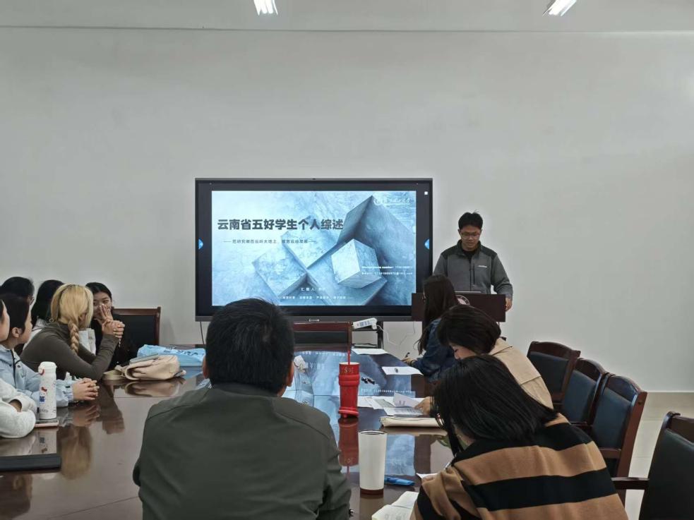 在公教楼209室顺利举办2025-2026学年云南省“先进个人”院级推荐人选答辩汇报会,2025级、2024级、2023级学生代表到场观摩学习,院党委副书记余红珍出席。